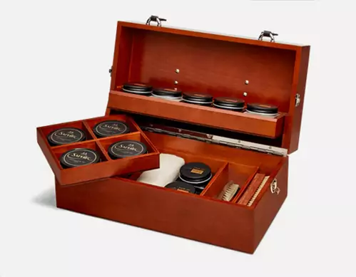 Pour les amateurs de beaux objets en cuir, les élégants coffrets d’entretien Médaille d’Or sont le cadeau idéal.